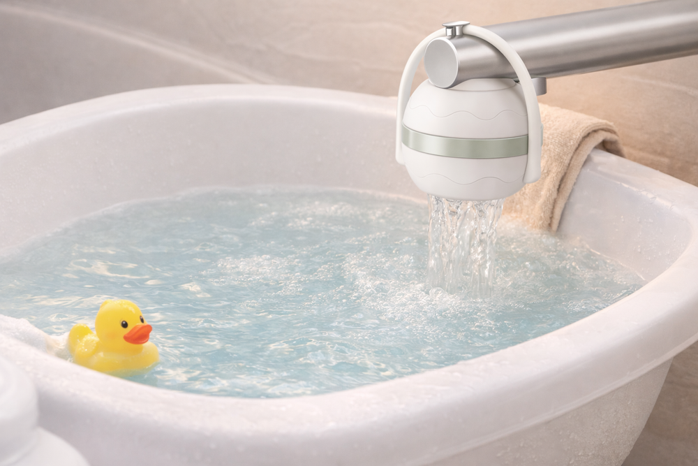 GentleDrop™ helps turn everyday bath time into a calmer, more comforting moment — so parents can feel confident and babies can relax.